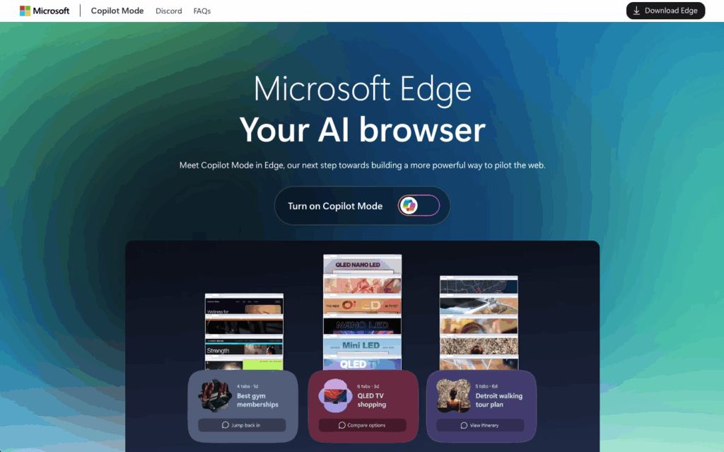• Adds AI capabilities into the existing Edge browser rather than replacing it.